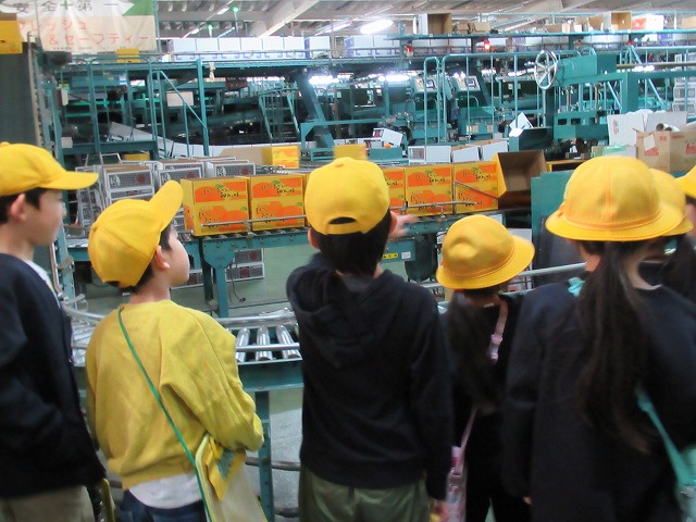 12月12日 JA選果場見学。たくさんの機械に子どもたちは興味津々でした。(2年生)